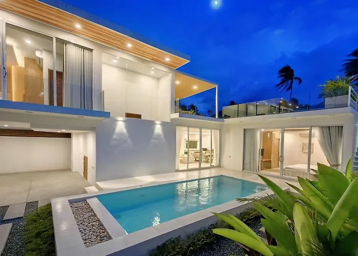 De 2-slaapkamer Happy Palms - Jungle View Villa Amphoe Koksamui heeft een zwembad voor de ontspanning van de gasten en ligt op 2 km van het Mae Nam-strand. De villa biedt uitzicht op de tuin en nodigt gasten uit om Bang Rak-pier te bezoeken, op 15 minuten met de auto.